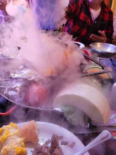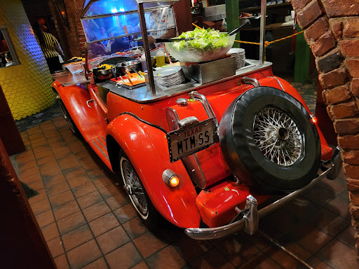 Magic Time Machine....more like Magic Change Your Mind Machine. To start things off upon arrival the hostess was not very friendly with a non inviting attitude. We sat in the lobby for about 5 minutes waiting to be seated, during that time I was noticed how untidy the waiting area was. Not the first thing you want to see at a restaurant. We were then escorted into the dining area and were told to take our silverware from an old cauldron, still not too bad you say. Finally made it to our table, now it hits me, I pull out the chair from under the table the seat cushion used to be red but is covered in years of spots, stains, grime. Then I notice the carpet not just in our area but the entire restaurant old dirty filthy, hasnt been cleaned or vacuumed in years. Then the hostess walks away to get a high chair for our daughter thats when my wife turns and tells me, "Are you really going to make me eat here". NO, lets get out of here! When the hostess does return I told here we changed our mind we where going to leave, she just replies, oh ok. Walking out I then really start noticing how dirty, griming all the seat and booths are, not to mention the filthy carpets and the car with the salad bar gross.. dusty, griming, unappealing. Finally made it out of the restaurant and I realized I dropped my phone, I go back in ask the hostess if they found a phone, the reply I get very rude, "No no one found a phone here". No concern or offer for help. Well then I walk back in going back to the unappealing table that had been offered searching around and under the table for the phone not finding it there. Now heres where things turn in my favor, since the place is so cluttered, gloomy, filthy I find the phone on the floor next to the filthy salad bar car, where a large group just passed over the phone not even noticing it on the floor. NO THANK YOU, ILL PASS GO RENT A RUG DOCTOR !