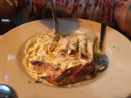 We arrived and went to the hostess stand where we stood directly in front of a few people for about two minutes before they looked up to greet us. We gave them our name, and they wrote it down but then didnt say anything else, or make any eye contact. After a minute we walked away to wait, then went to the bar. Service at the bar was mediocre, but we werent expecting to much. When we were seated at our table the waitresses were nice (a Ninja Turtle and Superwoman) and upbeat. The food came and was NOT good. Bland, unattractive, and obviously microwaved old pasta. When I told the servers I didnt like the meal they were sweet about it and suggested the catfish. The catfish came out very quickly, and was definitely better, but still not a $13.99 meal. Their prices and quality of food are outdated. The menu needs some serious work. The decor also leaves a lot to be desired and seems dirty, old, and dark. Luckily we had some kids at the table next to us who made it somewhat entertaining, but we will not be going back or recommending it to others.