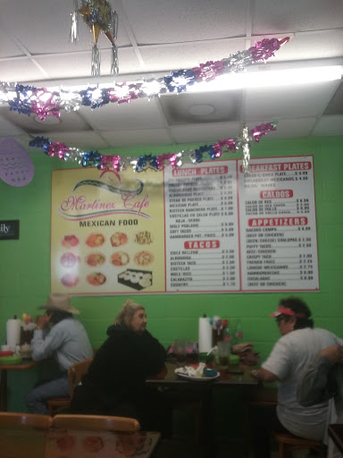 Martinez cafe has great service and food. Waiter and waitresses, Ricky, Miriam and Edwardo plus owners are very kind and are always ready to satisfy their customers. This restaurant is family oriented and reasonably. We have been to many restaurants and this one hits the spot. Since finding this one about a year ago, we havent missed the opportunity to come here when open. !! And we recommend Martinez restuant to everyone. Good food and Prices for a good amount of food. Thank yall.