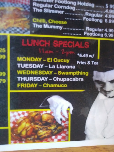 Ive been here a few times, and my "go-to" burger is the Cucuy Burger. I also enjoyed the Zombie Burger (mind-altering) and the "Children of the Corn" appetizer (very clever). There are some things I really enjoy about this place and some things I found lacking. I love the theme and all the different names for the items, and the food is good for the value. However, there seems to be some additive in the burger patties other than beef (Im guessing textured protein of some sort). Also, the fries definitely taste like they came frozen from a bag. The salt and paprika sprinkled on them do absolutely nothing for the taste. The fries almost seem to be an afterthought to the rest of the meal. (In all fairness, that may be because Ive grown to be spoiled by fresh-cut fries from other restaurants and that might be affecting my feelings about them). Bottom line, if you come here expecting quality fries...you are going to be disappointed. All in all, if you are expecting this to be a "better burger" place, it might be best to go elsewhere. But if youre looking for a "middle-of-the-road" burger place and try not to take it too seriously, this is definitely a good place to check out at least once and see if you like it.