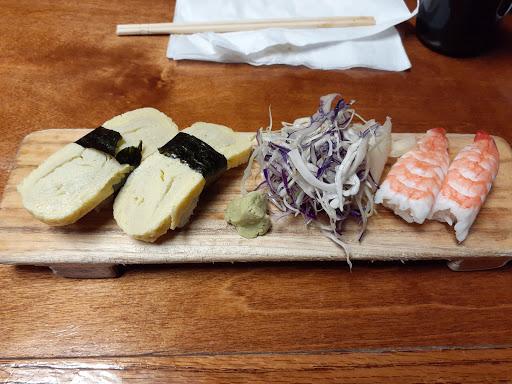 Overpriced and overrated. We arrived early, sat down outside, and waited until they opened. The outside waiting area was dingy and flies were swarming around so we were glad to be seated shortly after they opened. We were seated at a small table right next to the door. The lighting was very dim and whenever people came in or out of the restaurant the brightness and glare of the light outside shone in our faces repeatedly. The broth from the bowels of noodles we ordered was good and the sushi was ok but that was about it. Also chopsticks with chopstick hinges and a melamine soup spoon are the only utensils.They do not provide common utensils so if you dont know how to use chopsticks your out of luck. This place is a little overpriced hole in the wall with one restroom. It wasnt worth our money or time.
