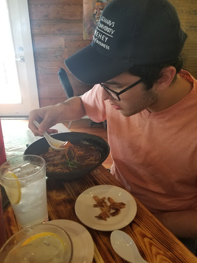 This is a no frills ramen place. I ordered the tantankon (pork) ramen. The broth was creamy and tasty. The raman noodle was decent, but Ive had better. There were generous portions of the port belly in the ramen. For about $10 for a bowl, the price is fair. The restaurant also has sushi. I sat at the counter by the sushi counter and saw that the fish wasnt that fresh or some of the fish have been there for a long time and decided not to order the sushi. The interior decor is nothing to boast about. It reminds of a hole the wall place. They could definitely have improved the decor of the restaurant. Update 10/16: I came back here for ramen again. Ill upgrading the food. The broth is really good and ramen (noodle) is also very good. This is the best ramen Ive had in San Antonio. Will make it regular visit when Im in town.