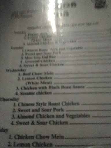 I ordered the Kung Pao Chicken, horrible, barely any chicken and the pieces that were there were very fatty. Lo Mein was very bland and the noodles were mushy. Lemon Chicken was dry and it looked like it came from the bottom of the container, some pieces were also discolored. Egg Roll was super oily and soggy. Fried rice was ok, but not up to par on other places I have eaten. Crab Rangoon, bad, the tips were over cooked and the cream cheese was runny. So, $30 later I ended up throwing it all away to avoid getting sick. I did not call to complain because when I called to place the order the girl was rude and not friendly at all, so I figured whats the point. NEVER Eating here again....probably some of the worst Chinese I have eaten, mall Chinese is better...