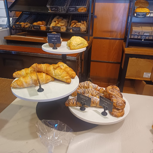 "Meh" - not impressed. Stopped by at 2:20 (post lunch-rush), not crowded, thought I would try a sandwich to-go and a box of goodies. Single person at the register - she seemed "put out" that I wanted to point-n-pick the pastries. But she got a box and started loading it up. Pastries are around $2.45 to $2.50 per item - all bread-y (similar to a La Madeline, but more rustic). 8 pastries for $19.40 + tax. A to-go sandwich ($8 bucks and change) was their full-size Hot Smokehouse Turkey Panini from their Signature Sandwich group. Great menu description. Sandwich was ready to go in 8 minutes. I grabbed my bag, drove 5 minutes back to work, and was - dismally unimpressed. Two slices of bread, a couple slices of turkey and bacon kind of smoodged together with cheese and a funky-tasting mustard (aka "sun-dried tomato ale mustard"). The bread was "small sandwich" sized - would have fit in a standard sandwich baggie with room to spare. Still warm, but kind of spongy (may be due to the short time in the bag). Served with a 4-inch chunk of french bread. Sadly, not a "manly" sandwich, and just barely enough to take the edge off of late-afternoon munchies. May give them another try - but this visit left me longing for "something else", perhaps "anything else"... JDMc