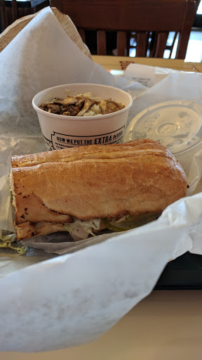 This was my first time at a Potbelly restaurant. I had the A Wreck sandwich on wheat. It was toasted and tasty. We also got a cup of macaroni and cheese for my 18 mo old but they only filled it up half way. Good food but a bit pricey.
