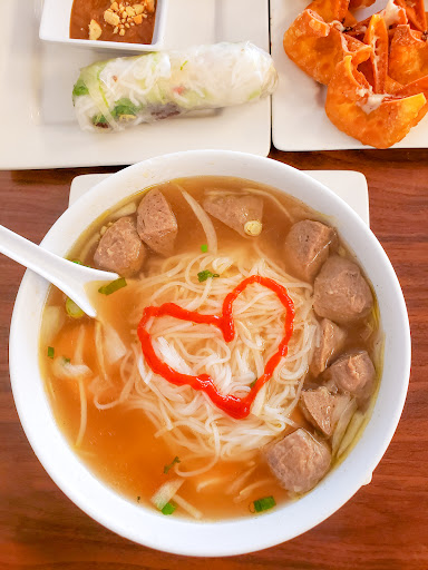 Delicious food! I love the meatball pho and my husband really enjoys their chicken pho...cant forget the Vietnamese egg roll, its the best! The only bad thing I can say about this location is that the air conditioning is not working properly and its super uncomfortably hot. Eating piping hot soup and a hot environment...not good but definitely worth being uncomfortable for a little while