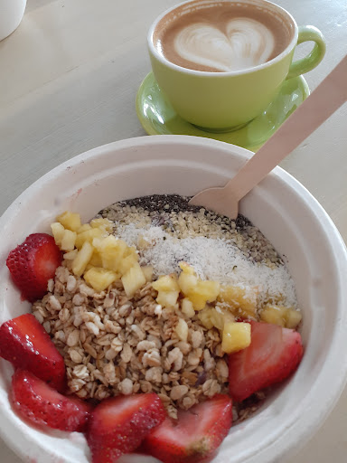A really clean and cool little place. I enjoyed everything I tried. The acai bowl was delicious. He staff was very helpful and even helped me carry my late to the table, as I had a little one in my arms:)