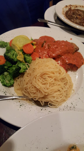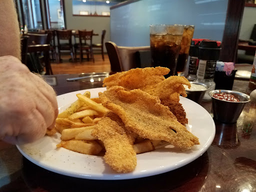 TL;DR: Kinda hard to see from the access road, decent food, higher than I wanted prices. It was a little hard to find, but to be fair I was being surprised for Fathers Day, so I wasnt sure what we were looking for. It was the Sunday post-church time, plus it was Fathers Day but it wasnt too crowded, with no wait for a seat. Something was frozen into the ice in my wifes drink, but the server saw it before we did & replaced the drink. The bread was really good & so were the apps (popcorn shrimp & mozzarella sticks). My stuffed shrimp were VERY celery-heavy in the stuffing & overcooked, but nobody else complained about their dishes. Overall, decent food.