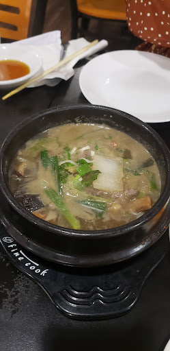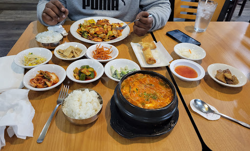 Authentic, delicious, and very large portions of Korean food. You get a bunch of mini korean starter dishes after youvplace your order. The service here is great. The menu is pretty broad encompassing most of your favorite authentic korean dishes. I ordered the jjangbong, spicy seafood noodle soup. It came out in a gigantic bowl. The broth was flavorful and very spicy. They didnt skimp on the seafood they put in the noodle soup. They put a bunch of noodles in there too. I couldnt finish the bowl, even though i had given my coworker some of my noodles to try. Id highly recommend this place.