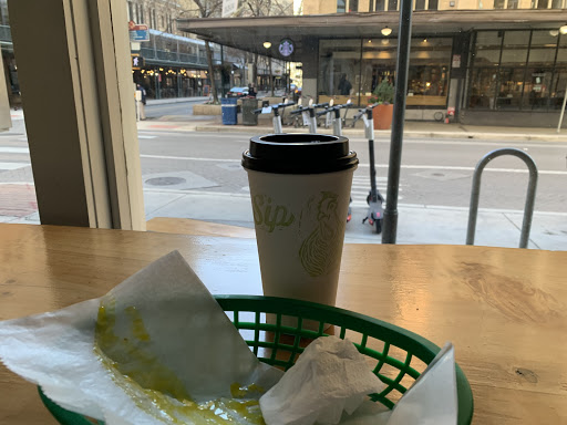 DELICIOUS food! The Mediterranean (salad) & the Madras (sandwich) are frequently sold out when I stop in for lunch on occasion and for good reason! The juices are fresh, the Parker House rolls filling, and the cookies INSANE. Great for both eating in, starting out the window to the street or taking food to go. Im not a coffee drinker so I cant speak to the coffee (I hear great things), but the food is right on the mark. The staff is great too: helpful, funny, prompt, insanely friendly. Real people, not robots. Comfy (adjustable) bar stools and sink-into-couches. Tables are clean and have plenty of space, should you need to work at a computer. I thought this was going to be a once-in-awhile lunch stop but it has turned into an almost weekly visit. With delicious food and great service, Sip is a no-brainer for working professionals in the DT area or people in town for a visit.
