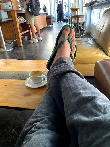 This place is good if its not crowded. Nice vibe and the people are nice...Solidly excellent latte. But we ordered some simple things (latte, drip coffee, avocado toast, and a ham & cheese sandwich). The latte came out fast but everything else took ages. To her credit, the woman behind the counter realized Id been waiting forever after about 25 min, but that was a loooooong time to grab a quick to go bite. Coffee was hot and good, food was ok (I didnt realize the avocado toast had bacon and it wasnt on the menu I saw when it was suggested, so I couldnt eat it. But Ill take the hit on that one because I didnt specifically ask). Would swing by again if it wasnt a full house and I had time to wait, but i might stick with fruit and coffee.