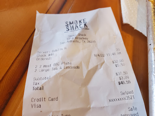 I had the "3 Meat Plate" with brisket, pulled pork and sausage. Im from out of state and this place was quirky, but such a different kind of experience I couldnt help but love it. PRICES ARE REASONABLE!! You get a lot of food for your money. Nothing fancy, just good BBQ. First of all, the meat was amazing. I couldnt stop eating. The spicy cream corn was a nice twist from typical corn as a side. The seating were picnic tables outside, beside the smoke shack in a place that must have been an old converted gas station. Either way, it was a cool experience and I highly recommend anyone to try this place out.