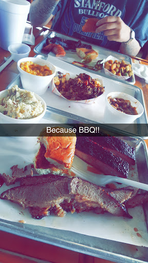 Best barbecue I have had in Texas so far. The brisket was so tender I could easily cut it with my plastic knife and the ribs had just a hint of brown sugar that made them delicious. It is a food truck but it is amazing! The sauce is thicker than most of Texas sauces Ive had, but still a vinegar base.