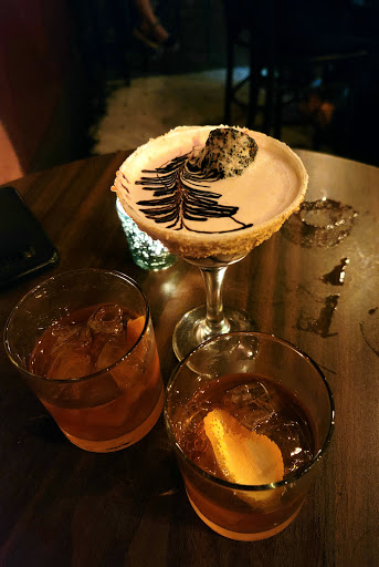 While in town on business I stumbled upon this martini bar. at the time of my arrival it was really dead. only two couples were present. I thought this would work in my favor. In some ways it did and some ways it didnt. Its not like most bars that have a drink menu that explains whats in a drink. They have a wall of chalk with drink names stylishly written on it but no description. As someone who suffers from food allergies I had to practically quiz the bartender - Cruze - as to each drinks ingredients. This made the ordering process difficult. At one point Cruze appeared to be annoyed stating what can you have. After giving that list he asked what alcohol I wanted. He then crafted a cocktail based on that. It wasnt what I had in mind when I began but it was good. I think the most fun I had was watching cruze work. With so many custom blends, rare liquors, and mixers it was a full out show. This is where I valued this bar. the showmanship of a mixologist can really make a difference. The food menu comes a food truck names she ate me. the selection options are few but just enough to take the edge off. from that menu we had the assorted pickles, bacon wrapped dates, and the blt. My second drink was one id heard a lot about call the Dirty Mexican Fairy. It had tequila, absinthe, and lime. This was like nothing id ever had before. not for the lightweight drinker for sure. Each drink was $11 which ill say is a steal. Signage leads me to believe they have a live band sometimes, maybe next time when I visit they will be playing.