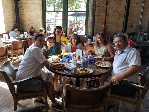 We brought our fathers here for a early Fathers Day brunch. We made a reservation because I heard it gets packed. Our reservation was for 11:30 am. It was steady busy but not overcrowded; there were available tables. Our server was Scott and he was handling numerous tables. Regardless of that, he was polite and swift. The only negative was it took a while to get our drinks. But once we got those service was consistently swift. He checked on our table an inviting number of times; he didnt neglect or harrass us. The atmosphere was social and comfortable. I had the chicken and waffles which was delicious along with a pineapple cocktail. The chicken was very tasty and juicy. They put on a small amount of hot sauce on top which was good for me because I dont like a lot of hot sauce. The waffle was light and crispy. My husband had a egg white omlette with crab, avocado, sour cream and green chili. My father had sirloin steak and eggs and his father had the lamb hash. They all seemed to enjoy their meals. His father said the hash had a bit too much potatoes but still enjoyed it. I definitely recommend this restaurant for brunch. I would love to try their dinner menu.