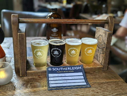 We recently went to Southerleigh for appetizers and small plates. We enjoyed 5 of these along with some of the fresh craft brew. The food was great, although a theme youll see below is that it didnt wow me or amaze me at any point really (only thing thus far is the pork chop). I always felt like the flavors of everything we tried could have "popped" more whether it be through more acid, salt, or fat. Or all three :) Deviled eggs with bacon and onion marmalade. These were really good deviled eggs: savory-yet-balanced. The pig fat pull apart rolls were also very good. How often do you find real fresh-baked rolls, especially in a cast-iron skillet, and most especially with lard rather than some cheap and nasty shortening/vegetable/seed oil? Further, theres a compound butter to go with it. Thats comfort food right there. We also got some herbed mash potatoes, and for mash potatoes, theyre good but nothing revelatory. Now, the two most standout dishes follow: the snapper throat and the chicken cracklins. First, the snapper throat is a deep fried snapper throat. Its delicious, all by itself, but there are two sauces that come with it as well. I believe they are two versions of a remoulade at the time we visited, both delicious. The snapper was memorable as was the the cracklins. Now, these cracklins are covered in a mixture of Crystal hot sauce (it doesnt get much better than Crystal) and honey. These are pretty good, and I recommend them. The Dog Ate My Alarm is a chocolate stout that I deeply appreciated during the course of this meal. The only comparable stout of similar taste to it is the Samuel Smiths Chocolate Stout out of England. We finished with the cobbler dessert, which was the weakest point of the meal. I thought the cobbler was unbalanced due to disproportional levels of peach, blackberry, and dough. I understand the use of the frozen vanilla anglaise; however, its a better application in theory than in practice as its still mostly frozen when your plate arrives. Ive had much better cobblers in my life, and most recently, at Stonewerks of all places. On other trips, weve tried most of the other sides - all good, but nothing special. The best thing weve eaten thus far was the pork chop (perfectly cooked) with a bacon and sausage gravy. One of the top 5 pork chops Ive eaten. Its really the only thing on the menu that has surpassed "good" or "pretty good" to "great". In short, I really enjoy the atmosphere and the theme/menu of Southerleigh. Its not one of the best restaurants in town (and its a bit overrated I think by the local media and public), but its definitely one of the better restaurants in town. Most things are "good" (prepared mostly properly with some flavor to it), but only the pork chop thus far was "great". Its a solid 4 stars; to get 5, they need to put out better versions of Southern food (particularly the sides and small plates) than I can make myself at home.
