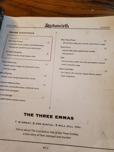 Beautiful bar and trendy cocktail menu. We sat in a converted silo - nice private seating. A little pricey, but expected with this atmosphere and location.