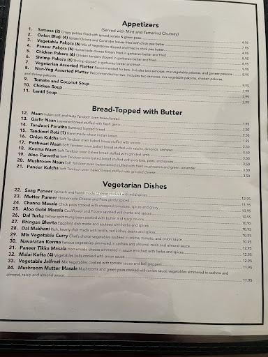 Lunch today was my first time here. I ordered to go for one of my employee and myself. The meal was fairly inexpensive. This was the first time my employee ever tried Indian food. He loved it. I thought it was good as well.... I use to travel on my younger days and have had Indian food from other countries. This was comparable at a decent price. The interior dining isnt very welcoming as it is probably intimidating to some people with the white table cloth.... But would have to say if your here for dinner they have to sitting area which are comfortable and breezy. It almost has the ambience of my travel in the middle East once again. So this is my second visit for the day and must say it was good as well. I think it would do well if they have a more outgoing cashier/waitress.