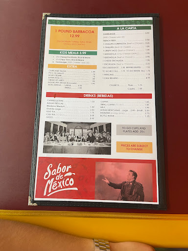 Tex-Mex menu o.k. coffee creamers should be refrigerated. Good wait service. Pop & Mom run business.