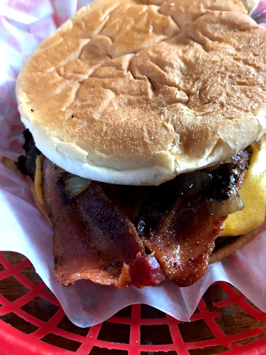 My cousin ordered a bacon cheeseburger. Bacon was inedible, tough, and looked like old leather. No one wants to eat old bacon from the afternoon and try to serve it in the evening. When we pay for something, we expect quality, and this definitely was not acceptable. The burger itself was bland and not worth the price either. Burger King or Whataburger wouldve been a better choice.