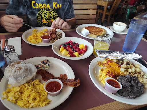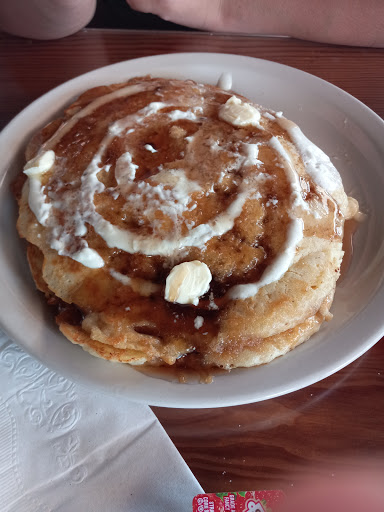 There was a short wait since it was a peak hour for them, but they handle it well. I ordered the scrambled eggs meal, 1 pancake and green tea. I was surprised to see that delicious fresh fruit came with it. The meal was typical food, but that PANCAKE was HUGE!! I couldnt finish it all. Service was efficient and I was in and out of there quickly. This place has become my favorite weekend morning spot. The menu on the board is where the hidden favs are. My must haves are the Carne guisada and the cinnamon roll pancake, but dont expect it during the week. Ive had supper here twice and both times the food was delicious. They also have a cold brewed coffee ale and various hot teas.