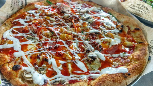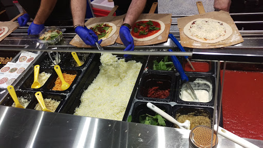 Many young undertrained workers. Ingredients were sub par at best. My spicy red sauce tasted no different from my wifes regular red sauce. The center of the pizzas were not crispy at all and just slightly undercooked. It seems this is caused by having too many toppings even though they have a sign that recommends you choose at least 3 to 4 (my pizza had 3 toppings and my wifes had 4 and her pizza turned out quite a bit less cooked than mine. It was pretty busy there and not very clean. My wifes stomach was hurting shortly after consuming her pizza and mine bothered me the whole next day. Pricing is about $10 a pizza and $5 for a dessert item. Based on the pricing and quality, I would not return.