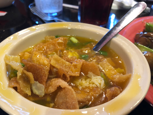 This is my go-to place when I am too busy to cook. I have ordered delivery twice from this location; so far, so good! It takes 30 minutes or less for the food to get delivered to our home and both times I ordered, the delivery people were nice and friendly. Everything is packed well. No spills at all, very impressive considering there is soup. The food have a fair amount of serving. I first ordered shrimp with lobster sauce. I had a different type of lobster sauce in mind, so it did not really reach my expectation, but it was still tasty. I ordered sesame chicken for the kids, and they loved it. The second time I ordered, I tried the korean chap chae which was delicious, but too greasy. The crispy noodles is very good too; only .75c a small pack. I also ordered walnut shrimp, it was saucey with vegetables, I am not a fan and would prefer Panda Express honey walnut shrimp. My daughter hates seafood, but she loves their fried calamari! The only thing I dislike is that since they use plastic containers for food delivery you could see how greasy/oily the food are, but overall I would recommend the food! My bill is usually around $30-$40 (delivery) tip included. UPDATE: I was finally able to dine in at this location for the first time. Very big and spacious. Cashiers and servers were friendly and corteous. Food is served within 5 minutes. I ordered the daily lunch menu which was Mongolian Beef at the time (Monday) that includes an egg roll and soup bar while my husband ordered the pepper steak. Food/serving is abundant, but sorry to say that everything we ordered were salty except for the kids meal chicken nuggets with fries. The sauce on the food are almost identical in flavor although they are different entreés. To sum it up, this place is quantity over quality :( but I would rather eat here for $10 than in Mcdonalds.
