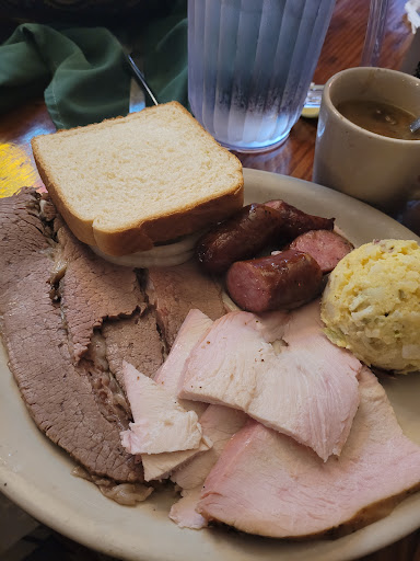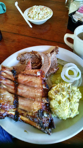 Me and my girlfriend have eaten here a few times. We had dinner just the other day (05/20/2017) and I ordered the brisket and sausage combo. She had the brisket and rib combo. Both my and her brisket was DRY and the beans were a little bland this time around. It doesnt mean we wont go back but we were slightly disappointed. BUT! The service was awesome and the turtle cheesecake was delicious!!