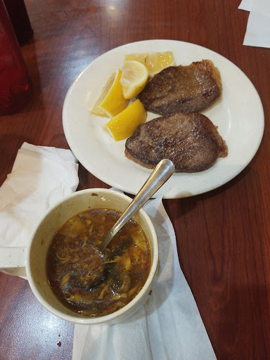 We walked in and a young gentleman took us to our booth and took out drink order. The waitress brought us our drinks and returned for refills and to get our empty plates. She was soft spoken and very polite, a great waitress! She brought our ticket over after we had finished and let us know how much it was. She took the money to the cashier and brought us change. This was our first time here and it was really good! We will be back!
