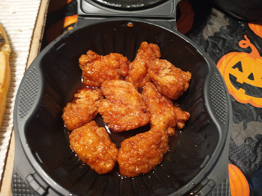 I dont know what happened but I ordered the box deal and usually the wings are wrapped in foil but this time it wasnt at all. The honey bbq sauce was everywhere in the box. I couldnt even enjoy the cinnamon sticks because they were marinated with the honey bbq. Wings were scattered around the box. Im going to just order carry out from a different location