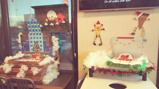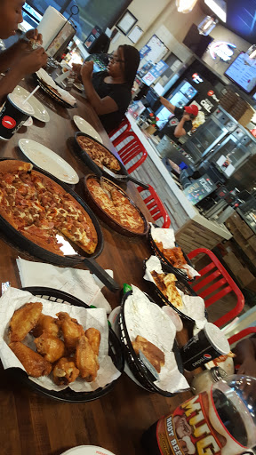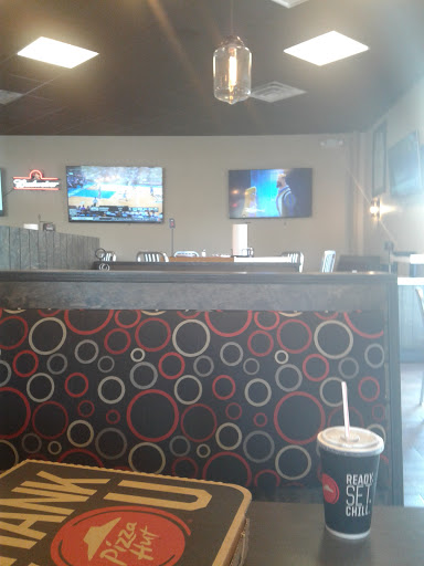 It is Pizza Hut. A chain. So... Nice interior that you could eat at. Not bad at all for a shopping center pizza chain. I was just ordering online to take back to the motel room for my family to eat. Online ordering was fast and easy. Pick up was simple, and I was able to add (actually purchase at a premium) some ranch for dipping at the time of pickup. They happily provided parmesan cheese and crushed red pepper flakes. The pizza was hot, fresh and properly cut (no having to recut - which would suck since we were at a motel and not taking this home where we would have more utensils for such things.) We also got wings, which were larger than expected, well seasoned and cooked well. Looks like they have decent people working here that do their job well. Thats good for a chain, eh? ;-)