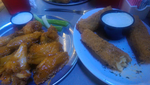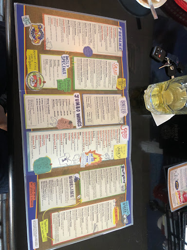 Waited 10 minutes for our server to come take our drink orders. My group were getting ready to walk out when the server did finally get to us. The place was not busy, it was a late monday night. Seemed to be half a dozen staff just talking. Our wings baskets and salad got to us after the table of two next to us got there food, they also arrived 15 minutes after us. Service was almost unacceptable but got a little better, server came to refill drinks, but never asked if we needed anything, Cleared table before we really finished. $6 tip for the effort, 10% of bill, hated our server, will be eating elsewhere from now on. Also, be prepared to pay high prices. Really horrible first impression.