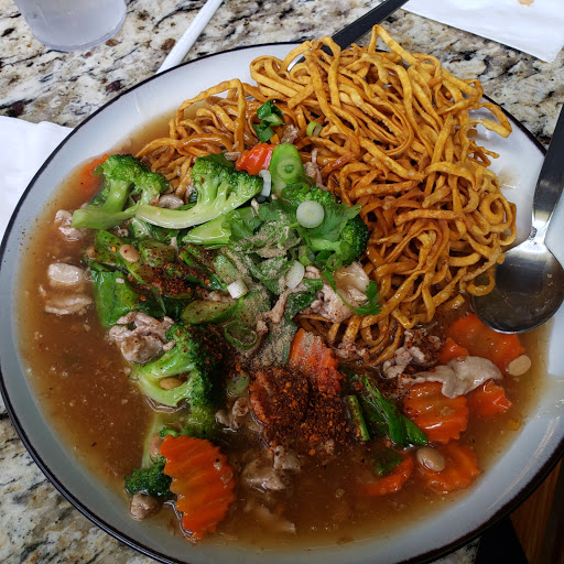 Pro: Very friendly cashier. Grocery store inside the restaurant. I did find a few things I bought to cook at home. Con: Food wasnt very authentic. Green curry and Larb were super sweet. Pork noodle soup was super salty. I wouldnt eat there again but would definitely shop there for grocery.