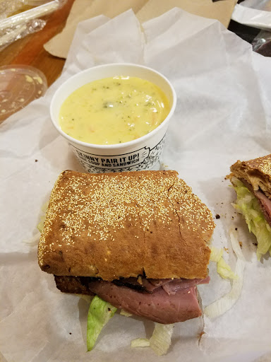 Got a Sandwich and a cup of soup. The sandwich was just OK, but the soup was really good. Service was OK. Price was a little high. As far as sandwichs go, Id rather eat at Jimmy Johns or Schlotskys.