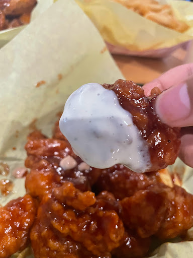 Chill place the cashier was really friendly, thanked us a lot. Food was great, sandwich seems a bit big and not expensive. Wing were well done and tasty