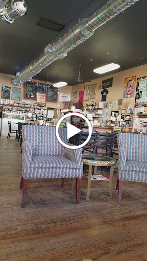 Friendly atmosphere, good sandwiches and ice cream, patio in the back allows dogs and they will give you a disposable water bowl for your dog too. Local musicians sometimes perform.