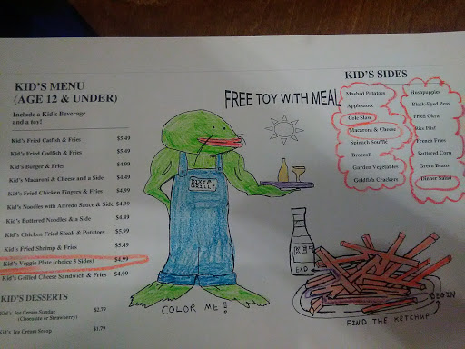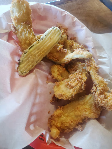 First time going there and would definitely go back. They have a fun yet simple atmosphere that caters to family and group settings. We were surprised by our drinks being served in miniature pitchers, but that added to the fun home atmosphere. PROS: - Our waitress, Arianna, was great! She was polite, willing to check on options and had a great personality. - Food. When you come here definitely bring an appetite because the serving portions are BIG! The fish, fried green tomatoes, fried pickles and shrimp all have a great crunch to them. Nothing was soggy. SUGGESTIONS: - While the food was great, they could definitely amp up their flavoring on the fish and such. They flavored the fries more than anything and even then, some of the fries were too salty.