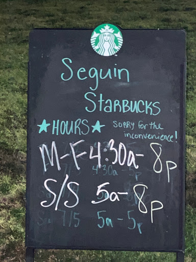 I personally that the Baristas here work very hard considering that they are the only one for miles around theyre very busy all the time they are always nice in spite of how busy they are and the service is great the drinks are good and they always have a smile on their face way to go Seguin Starbucks!
