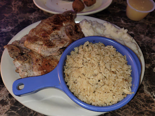 Food was AMAZING!!!! Cocount shrimp plate is the way go the portion sizes are enough to fill up even my hubby... The kiddos ate the catfish plate and loved every bite. We enjoyed it so much it was the only place we ate our entire visit we even got a to go order on our way off the island