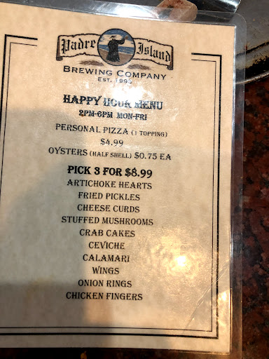 Have been a few times. Always happy and full when I leave. Great menu gives even picky eaters choices. Menu is available on website. I do not eat seafood, but even I could tell the seafood was really fresh and prepared correctly. I got the Padre Burger cooked medium. The Pico de Gallo and avocado were definitely freshly prepared, and burger was cooked correctly. My last visit was with a group of 7 and everybody was happy. The P.I. Brewing Co. as their name implies brews beer on premise. Nothing fancy, traditional styles are represented well. Draft beer can be taken to go, so bring your/buy a growler. There is a full bar and great bartenders. P.I. Brewing Co. merchandise is available,see website. Growler aficionados may be interested in purchasing a drinktanks double wall stainless steel growler(not seen on website) these are available in 128oz size! They also sell the available keg cap, which takes a co2 charge and will keep your drinktanks brand growler under pressure keeping your beer fresh for weeks. Look the brand drinktanks up online for questions. I only added the plug for drinktanks because craft beer freaks will understand.