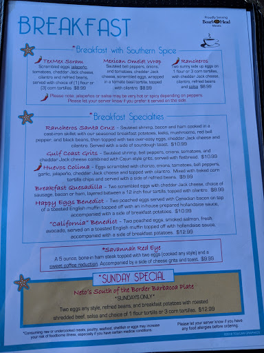 Breakfast was fabulous, and very reasonably priced for SPI. The selection from pancakes to eggs was varied but not too expansive. Pancakes were fluffy, French toast was "scrumptious" (as described by a 10 year old), the multi-grain waffle had a wonderful unique flavor and was cooked to perfection, crispy on the outside, soft on the inside, and the Tex-Mex scram was an awesome blend of flavors. This will be our breakfast spot whenever were in SPI.
