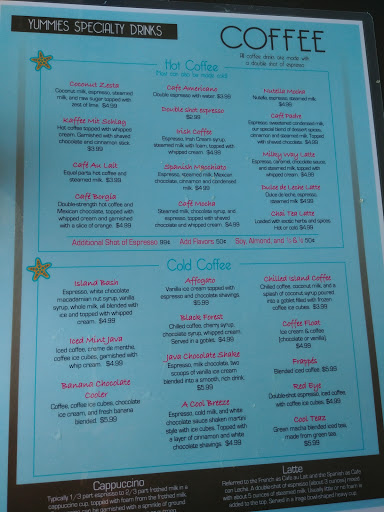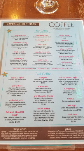 I was recently in South Padre Island and am glad I stopped at Yummies for brunch and coffee. I was greeted as I walked in, tended to relatively quick and I wish I could remember the coffee that I ordered because it was so good. It was served in a large cup and was called something like "coconut zest". The food was good, tasted home-made (authentic Mexican). The atmoshpere has a European feel to it. I believe it may be a wi-fi hotspot as well because there were a few customers with laptops. Im definitely going back there next time Im in South Padre Island.