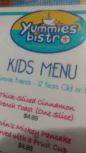 Weve passed by Yummies several times but theyve been packed. Walked in around 12.15 on Sunday and it wasnt as crowded, so we got a table immediately. Our server was incredibly helpful and recommended some great Yummies favorites. Tried the cold Padre Coffee (a blend of cinnamom, nutmeg and other island spices, with condensed milk and expresso) , kids loved the chocolate peanut butter smoothies and I thoroughly enjoyed the spicy Huevas Colima. My husband ordered the Bistro burger, my 7 year old requested the "Make your own eggs, 3 year old just had to have the Gavin Mickey pancakes and my 11 year old picked the shrimp quesadillas. The portion sizes are very generous. Its no wonder this place is crowded. The food is delish. (Average price per dish $9.99)