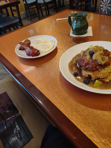 Really good food. It wasnt super busy but our server was not as attentive as we would have liked. We never got a refill of coffee and for a breakfast place that should be a priority. Another server did come over later for refills when we looked desparate. Maybe our person was new on the job. And as far as people complaining about the long waits on busy weekends, to me that means it must be worth waiting for...no one MAKES you stay there until a table is ready. You can always opt out if the wait is too long for your patience. IMHO that is not a reason to give a lower rating.