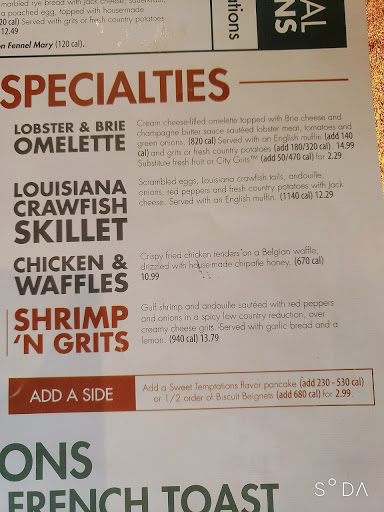 This restaurant is beautiful inside and out, with delicious food!! Youll fall in love with their city grits, phenomenal. They are very kid friendly, they have a nice selection of kids meals, and they make their food fresh from scratch. The staff are very courteous and friendly, and the theres a warm and cozy environment. The layout of the restaurant is very spacious and theres multiple styles of seating. Thumbs down, this is my favorite place for breakfast and lunch! Oh and their drinks, lets just say they do not water down their drinks, so their fully satisfying.