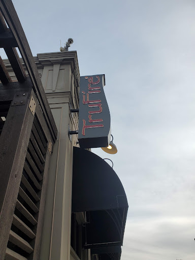 Disclaimer: I was here for a private event. We were a big group, occupying one half of the restaurant, yet service never suffered. It was a very good dining experience. TruFire has a cool vibe, is not too brightly lit, and has good house music (I recall hearing The Cure). There is bar seating and high tables, as well as a dining room. There is also a nice patio out front. Our group occupied about one half on the restaurant. Which is the main dining room. It was a big group, and yet service was very efficient. Our server, Izzy, knew the menu well and was very helpful with our choices. We started with the hummus, which I have to say, was some of the best Ive ever had. It was not so much the flavor, which was very good, but rather it was the texture. It was almost fluffy, not whipped cream fluffy, but not just chickpeas (aka garbanzo beans) in a food processor either. What is the secret? Garnished with feta cheese and roasted red bell pepper, served with pita wedges and veggies, it was delicious. Izzy told us its a family recipe of the owner. If you like hummus, and find yourself at TruFire, do not pass on this offering. For mains I had the Akaushi Burger. 1/2 lb of fresh akaushi beef, aged cheddar, avocado, onion, tomatoes, house sauce, regular or whole wheat bun. I was not familiar with akaushi. Akaushi is a Japanese Wagyu breed of cattle and is apparently being raised in west Texas! Go figure. Although I was not asked how I wanted it cooked, it came out medium rare, which was perfect for me. All I can say is a very tasty burger. Will definitely be back for a burger. My dining companion had the Spicy Garlic Noodles. Shrimp & chicken, roasted 3 shrooms blend, prosciutto, romano, sweet vermouth butter sauce, arugula. This was a very solid dish, with probably the right amount of spice to make it “spicy” for most, but not for me. Also I would have liked to get a bit more of the vermouth. Decent sized portion and very good flavor, just not my preference (Im watching the carbs). For dessert we each had a piece of the Blue Lemon – house baked olive oil cake, lemon jam, creak, blueberry caramel. Very tasty. Would definitely have again, as I need to “study” it some more.