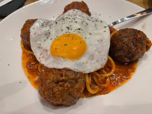 It was my first time. I sat on the patio, and I have to say service at first was unacceptable, it took 30 mins, but a few more minutes later I had a meatball dish from heaven cooked for a King. I got the Smoked Meatballs, which is served with a fried egg on top. It was very good, but I think there is too much spice in the pasta, which over flavors the fried egg. I had enough food for two meals on the dish which cost $20. Unfortunately after waiting an incredibly long time trying to pay with card, I can only give them 3 stars. Bottom line, food was great, but service sucks, and I would likely not go back.
