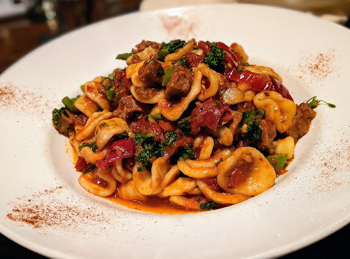 Im trying to figure out why we waited so long to try this restaurant, because it was flat out terrific. They have a spacious patio, which was perfect for the cool evening weather (in early October). Probably would be comfortable for most of the year, except perhaps the dead cold of winter or the scorching heat of a summer day. We started with the mussels (Cozze In Padella), which were fabulous - just enough garlic flavoring and a little buttery sauce on the side. My wife had the sea bass with lump crab meat and spinach (Branzino Con Spinaci E Granchio), and I had the veal chop (Costolette Di Vitello Al Rosmarino). We agreed that hers barely edged mine out in terms of overall flavor, but both were delicious enough that we would very likely order them again next time. Definitely adding this place to the "repeat visit" list.