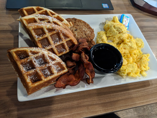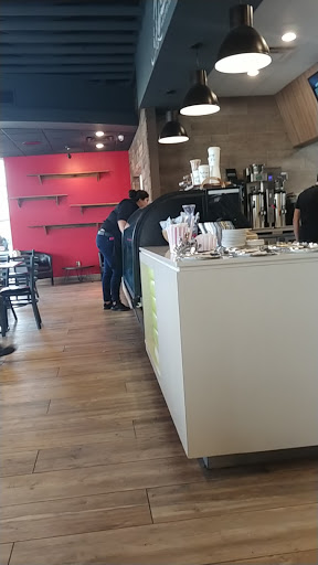 Great coffee and experience! Cool environment, bustling but quick friendly service. The choco late doesnt have coffee but the waitress told us. They do have table service or you can order at the register. There is a ton of seating so even when busy there seems to be room. The waitress brings water without even asking. Easy and plenty of parking. The coffee came after the breakfast sandwiches but it was fine, we already had water and it was worth the wait. We got the croissant and Kaiser roll breakfast sandwiches. Get the herb cream cheese, its amazing! The white chocolate moccacino is really good, if you get the premium you can put the syrup on the side and control how sweet it is. Really liked this place.
