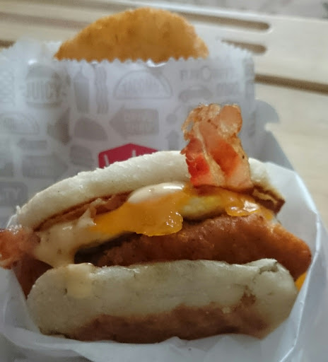 So I have a few bad drive-thru loves, and JITB is one of them. But this bacon egg and chicken fried breakfast sandwich with some kind of sauce was not good. It was reasonable, it was just missing some kind of element, I feel like it was possible that the chicken was fried in old oil. So it just hadnt have any Vavoom, at all..OK though probably a good, after the bar, drinking sandwich.
